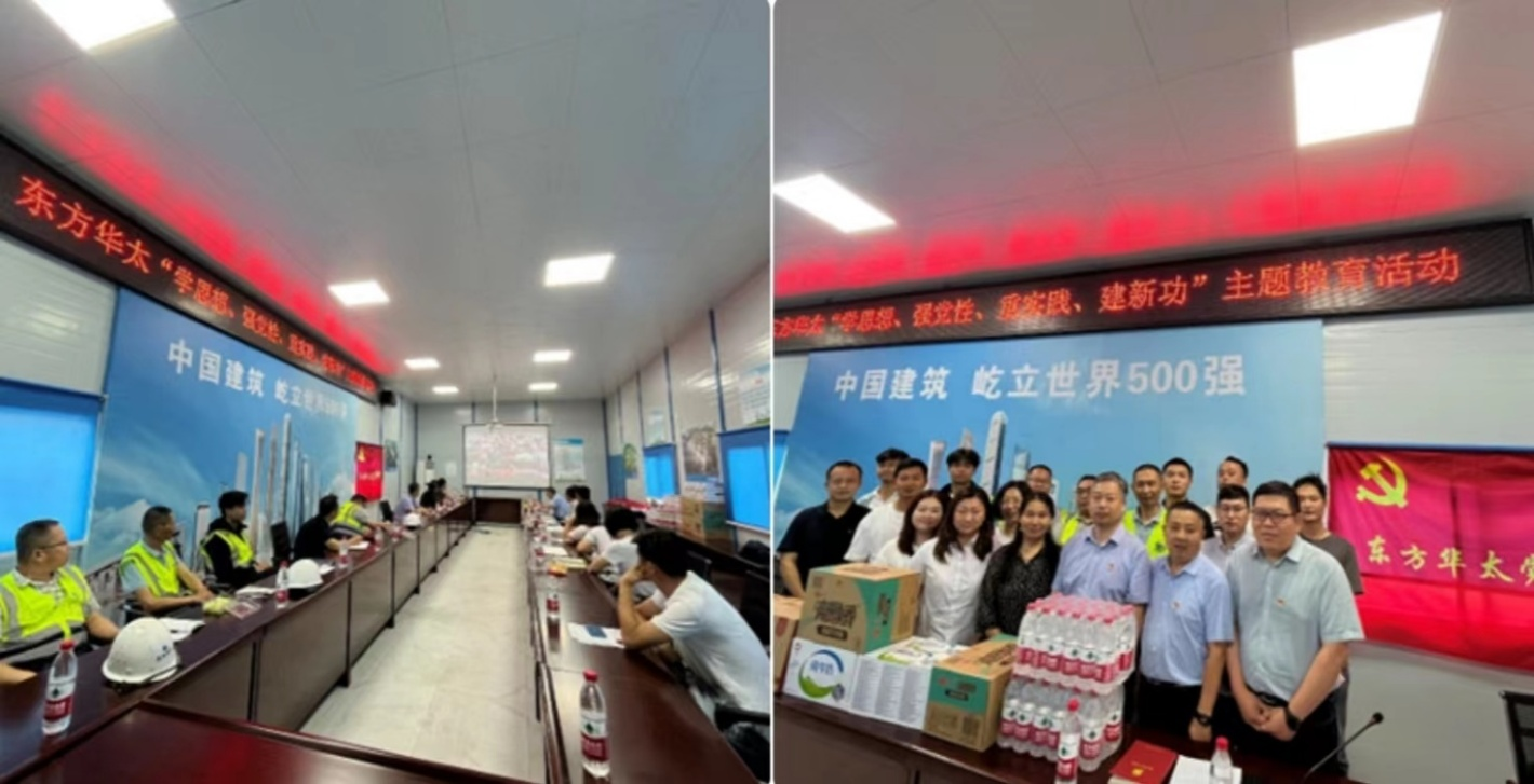公司黨支部于2023年6月17日組織全體黨員、入黨積極分子及項目群眾代表等前往公司負責承監(jiān)的鄂州市臨空經(jīng)濟區(qū)星級酒店項目開展迎七一“學思想、強黨性、重實踐、建新功”主題教育與項目聯(lián)建活動。
