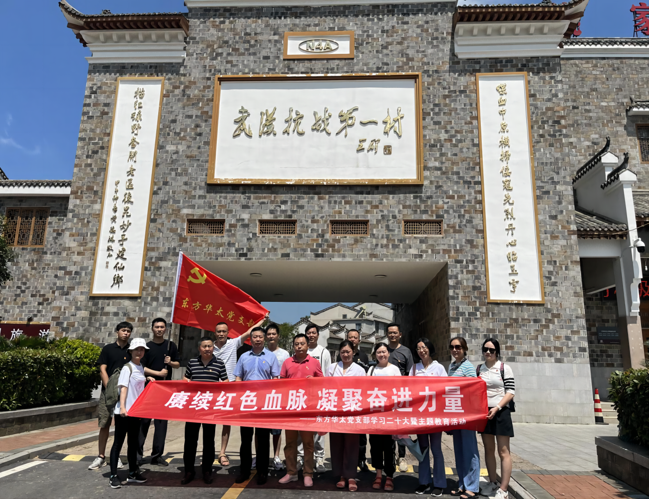 2023年8月5日,黨支部結合企業特點和支部工作安排,認真落實黨支部主題黨日“5+N”模式,創新黨史學習教育載體,組織全體黨員、入黨積極分子代表等前往武漢抗戰第一村---姚家山新四軍第五師機關舊址紅色教育基地,開展“賡續紅色血脈 凝聚奮進力量”學習二十大暨主題“沉浸式”紅色教育活動。“行走黨課”作為理論研習的重要載體,通過大家喜聞樂見的方式推進偉大建黨精神內化于心、外化于行,共同締造出了“可見”、“可讀”、“可聽”的行走路線。感受革命奮斗歷程,傳承紅色基因,營造見賢思齊、比學趕超的濃厚氛圍。